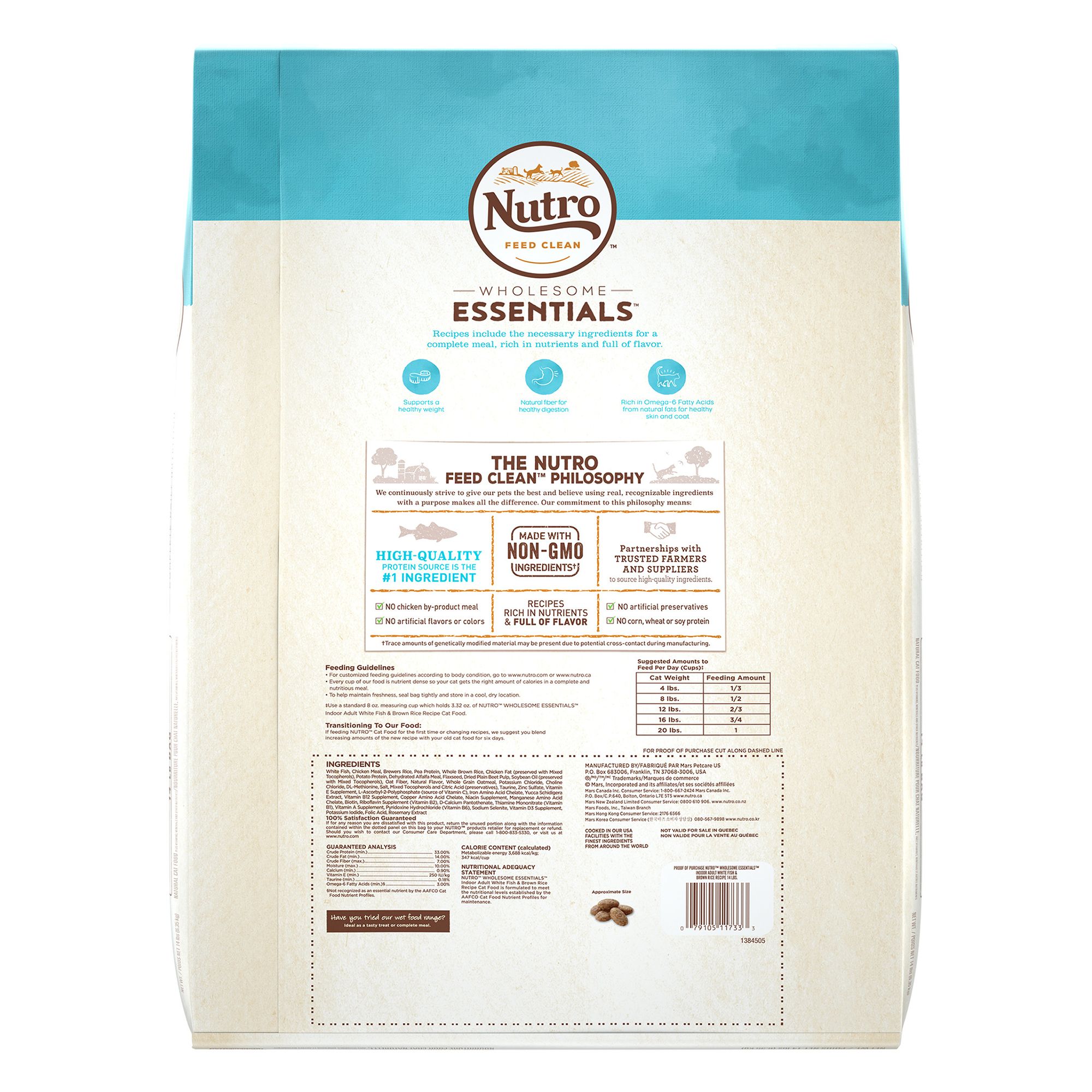 Nutro Indoor Adult Cat Food White Fish Whole Brown Rice Recipe