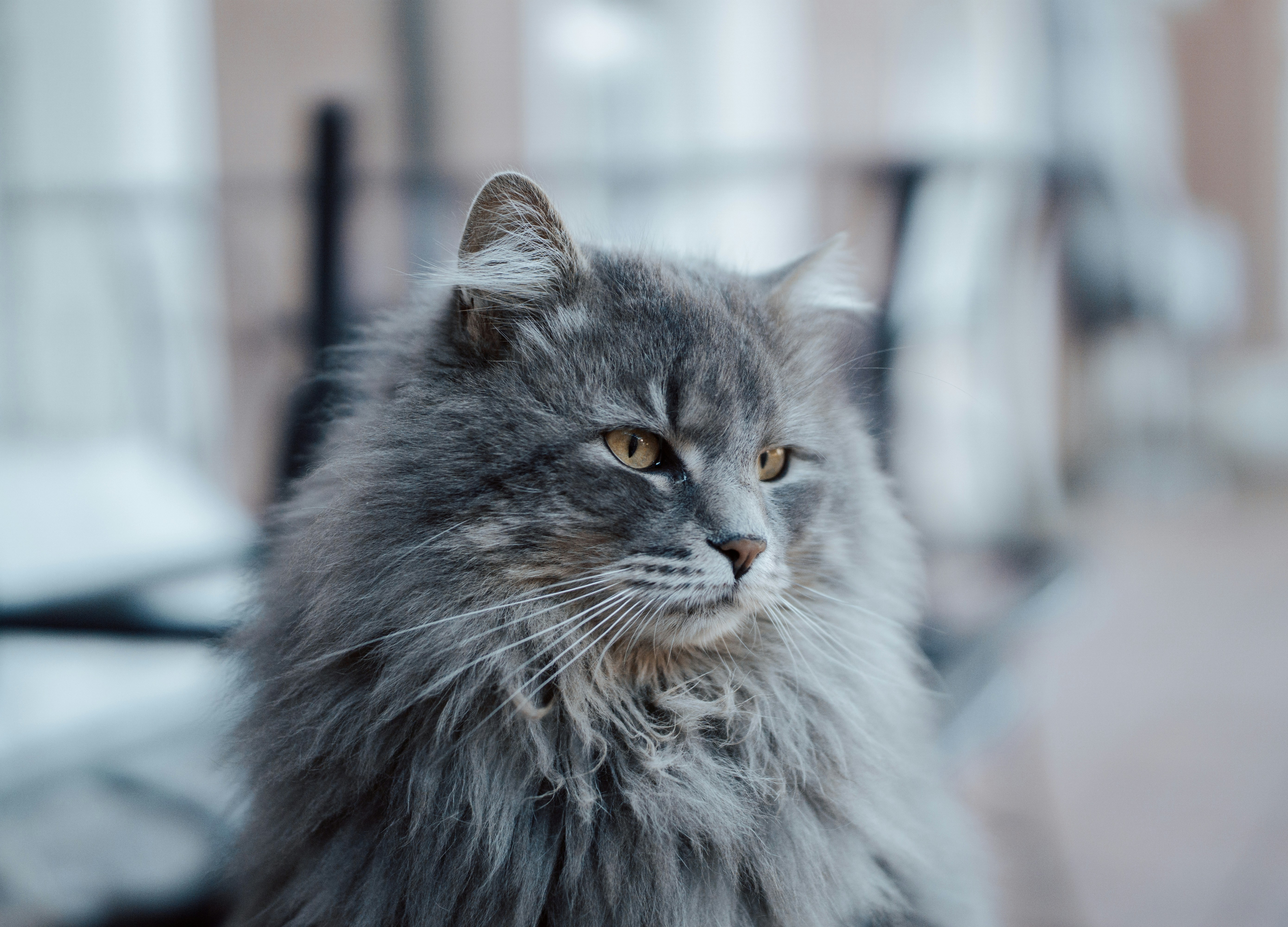 Grey and white persian cat sitting. Red can be a deep copper or ginger tone. Persian cat closeup face picture. Blue really describes a shade of gray or a dark slate color.