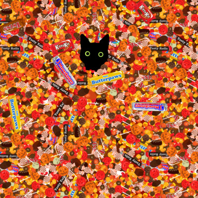 Halloween Black Cat Hiding In Candy Premium Roll Gift Wrap