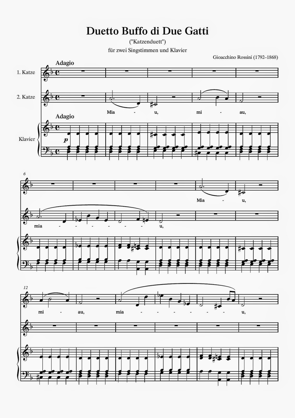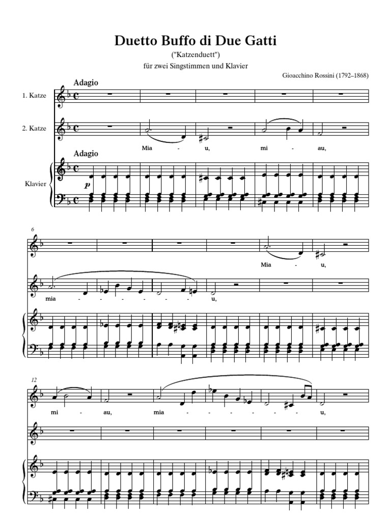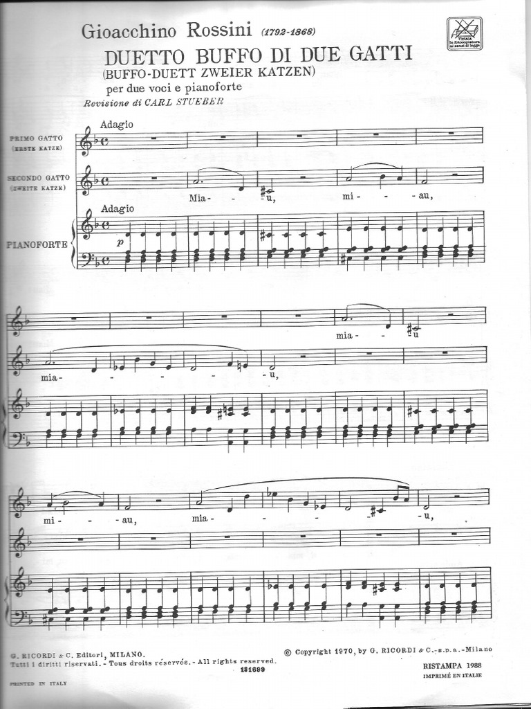 Rossini Cat Duet For 2 Sopranos Duetto Buffo Di Due Gatti Pdf