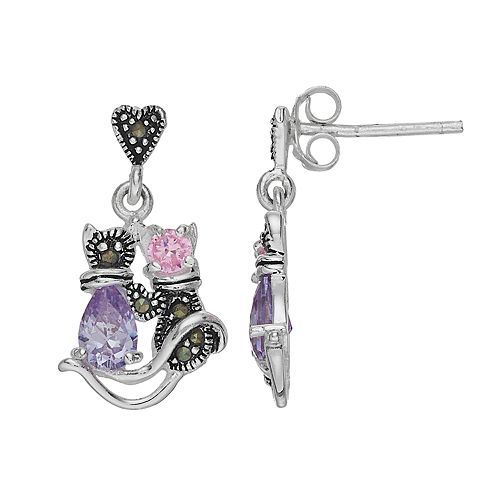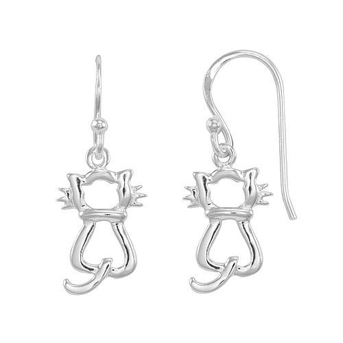 Verna Sterling Silver Cute Cat Drop Earrings Nature Reflections