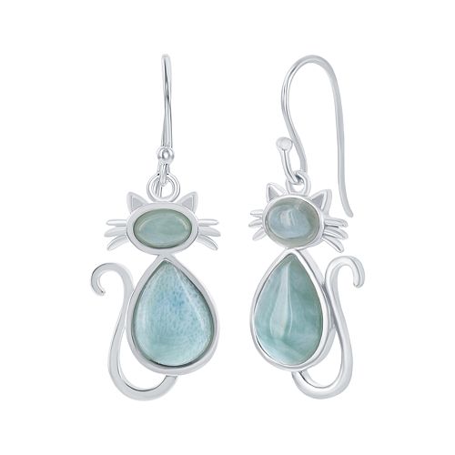 Silver Cat Earrings With Gemstones Blue White Black Turquoise