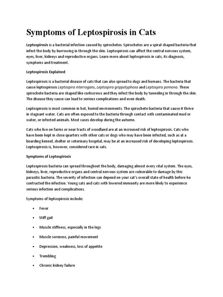 Bacterial Infection Leptospirosis In Cats Petmd