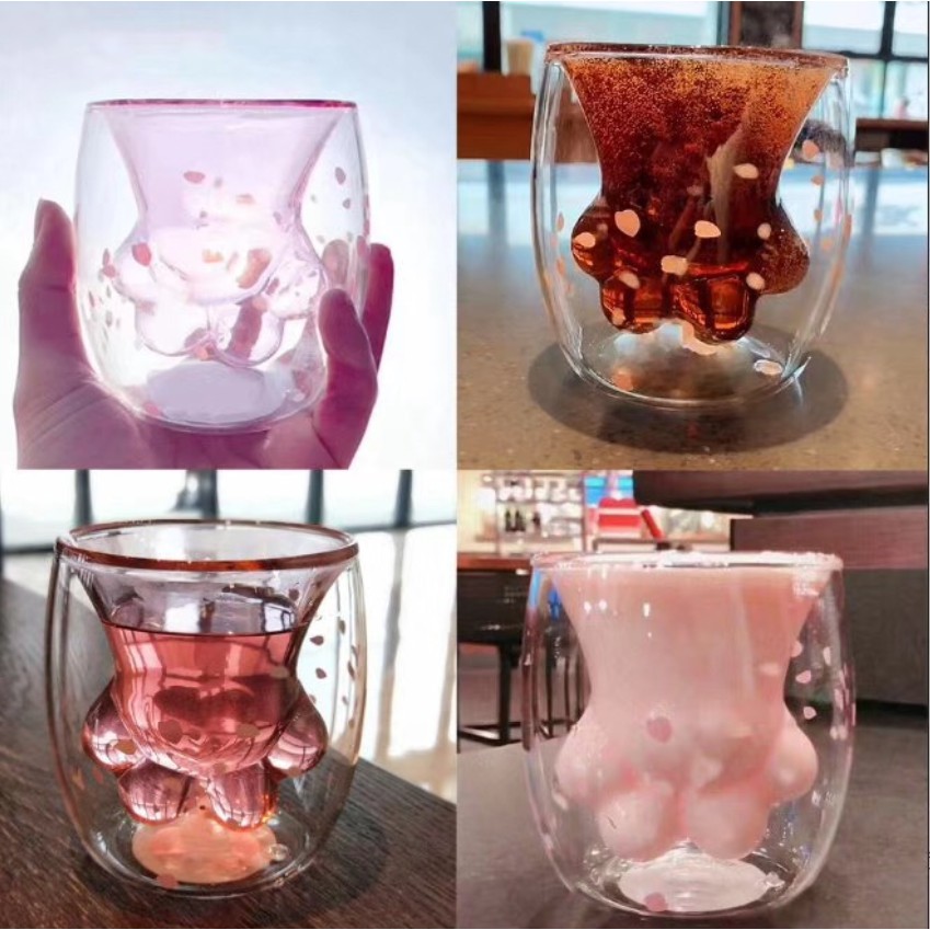 Starbucks Cat Paw Glass Sakura Japan Pink Cherry Blossom Petals