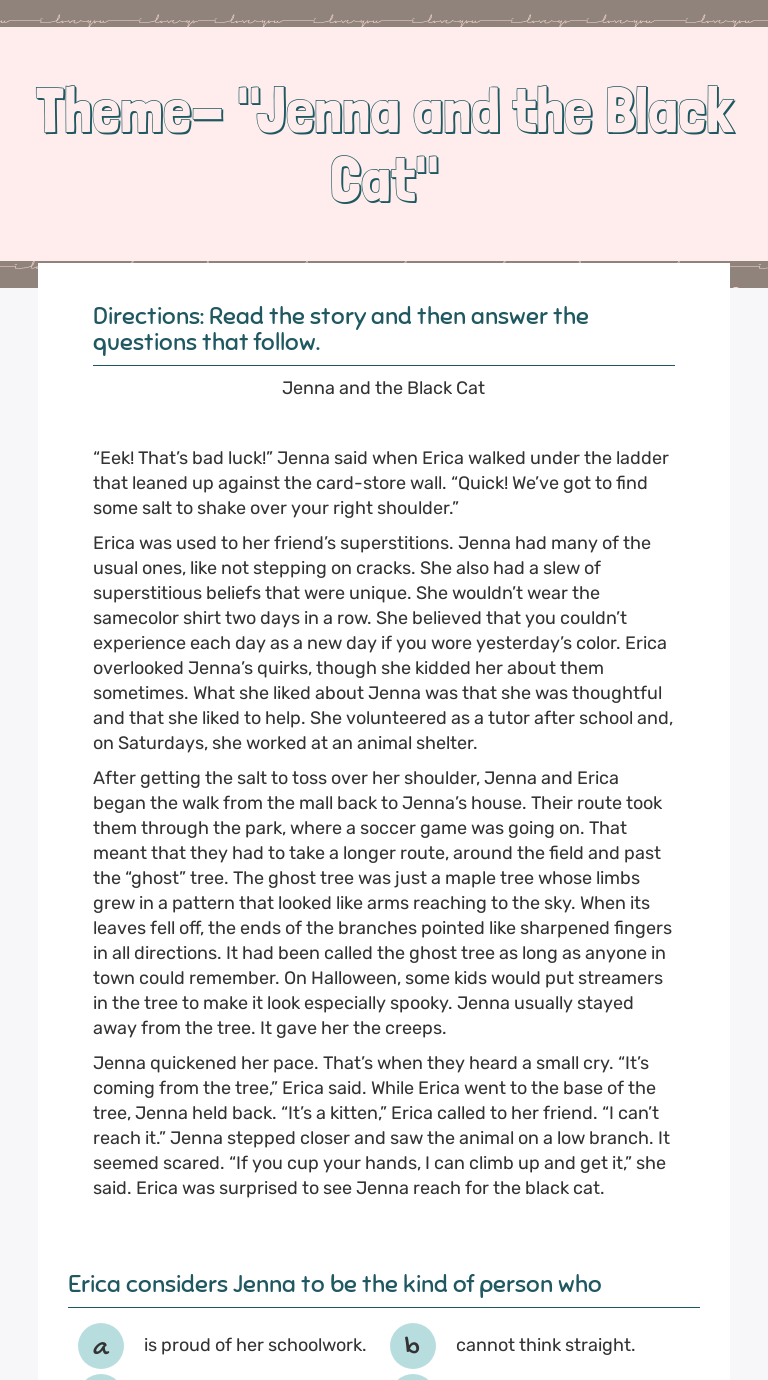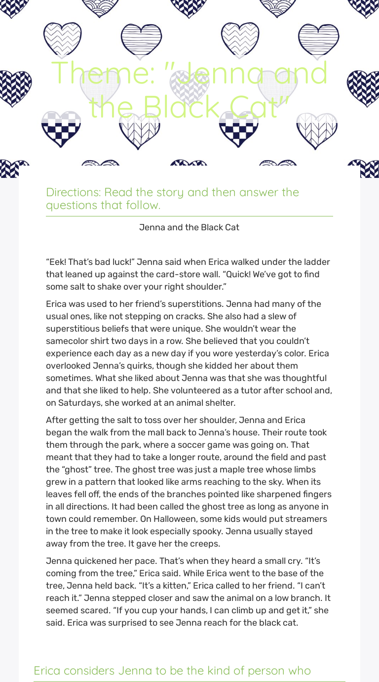 Black Cat Comprehension Questions Comprehension Questions This