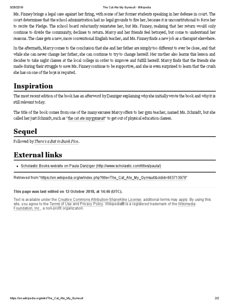The Cat Ate My Gymsuit Puffin Modern Classics By Paula Danziger