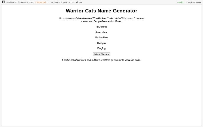 A fifth clan skyclan is introduced in later books. Pagetitle warrior cat name generator. Unique warrior cat name generator. Itll automagically combine one of the prefixes suffixes above to make a name.