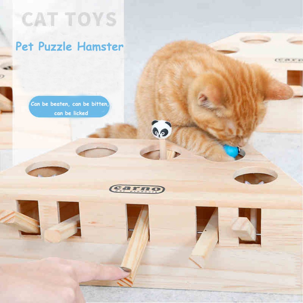 2020 Hlzs Solid Wooden Cat Toy Puzzle Interactive Toys Whack A