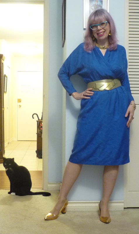 A Business Woman Talking On A Cell Phone With A Cat Sitting Next