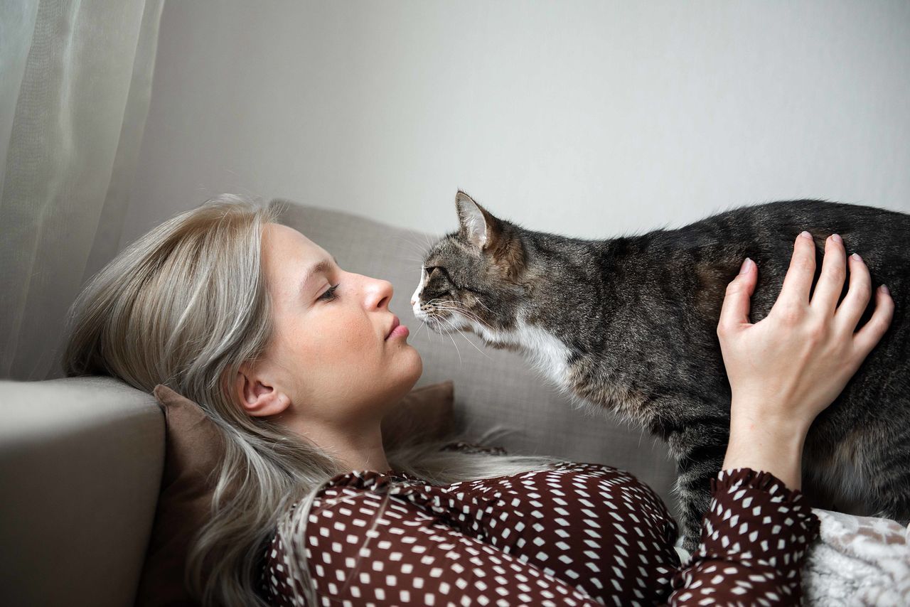 Beautiful Young Woman Stroking Her Cat Stock Photo Edit Now