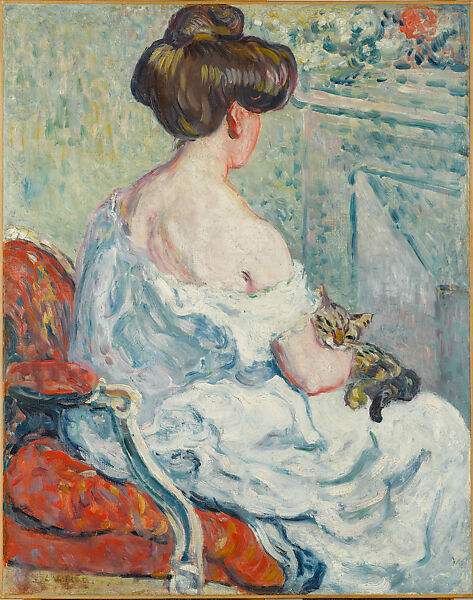 Woman With A Cat Renoir Painting Reproduction 1865 Topofart